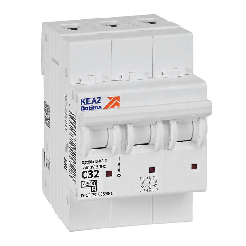 - Выключатель автоматический модульный 3п C 32А OptiDin BM63-3C32-4.5-УХЛ3 КЭАЗ 326815