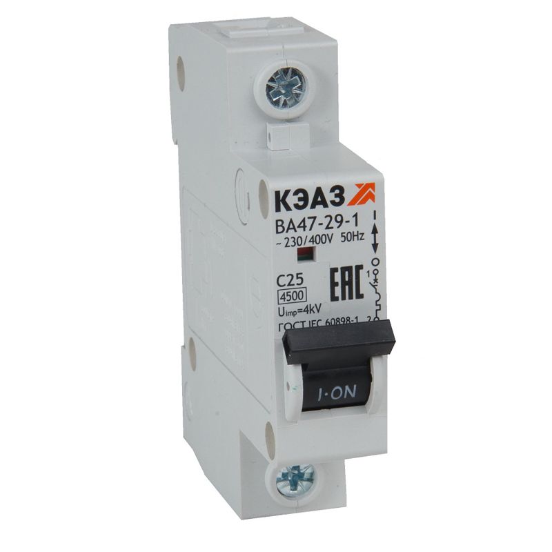 - Выключатель автоматический модульный 1п C 40А 4.5кА ВА47-29-1C40-УХЛ3 КЭАЗ 318203