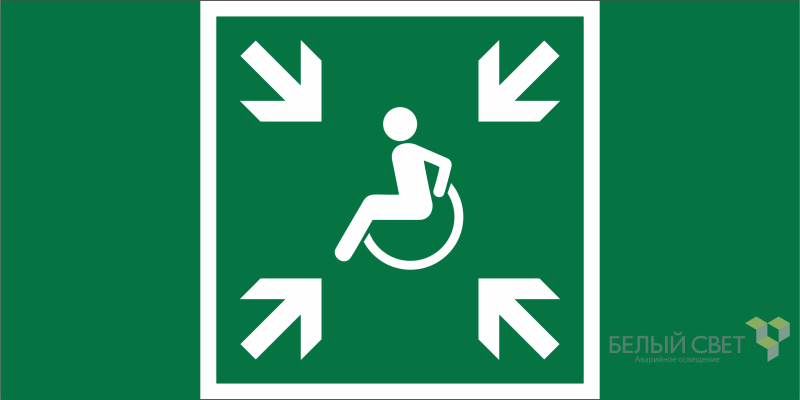 - Знак безопасности BL-3015.E65 "Пункт (место) сбора МГН (безопасная зона МГН)" Белый свет a19569
