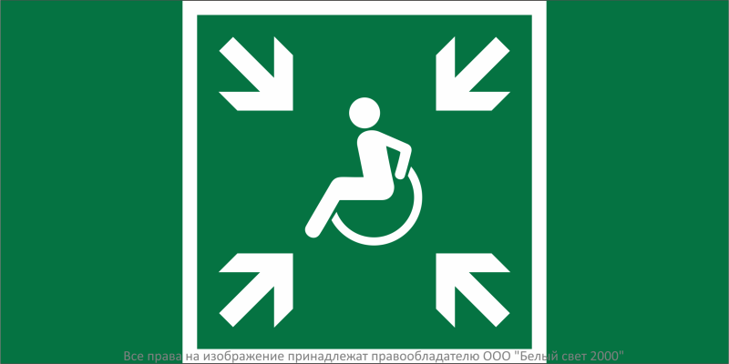 - Знак безопасности NPU-2010.E65 "Пункт (место) сбора МГН (безопасная зона МГН)" Белый Свет a28570