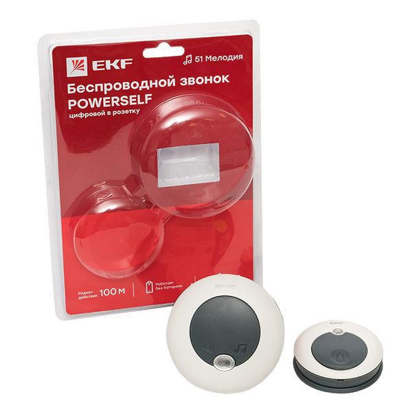 - Звонок беспроводной 51 мелод. с индик. 4 уровня 230В в розетку Powerself EKF DBS-003